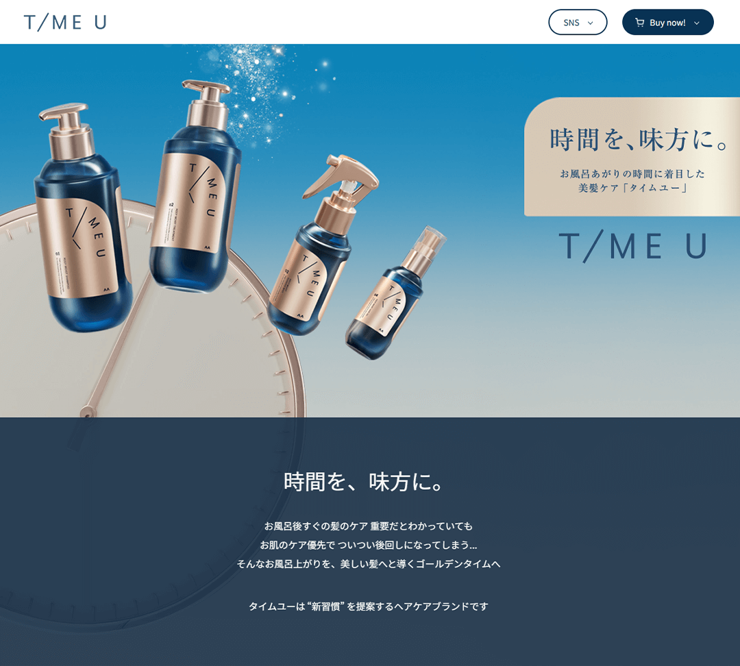 お風呂上がりの時間に着目したヘアケアブランド「タイムユー」の立ち上げにあたり、ブランドサイトの構築をご支援しました。
