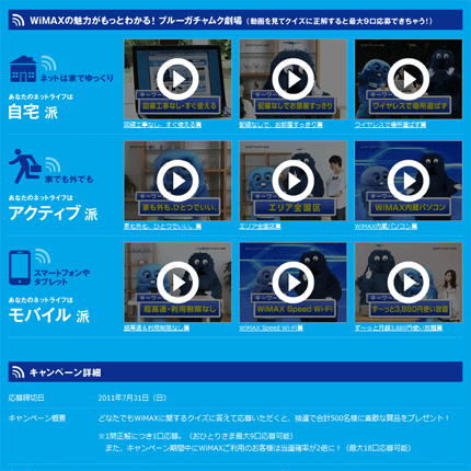 UQコミュニケーションズ株式会社の提供する、UQ WiMAX(ワイマックス)サービスの累計契約数100万契約を突破したことを記念し、だれでもご応募いただけるオープン懸賞「ありがとう!WiMAX100万契約キャンペーン」を実施。