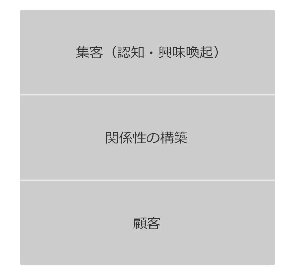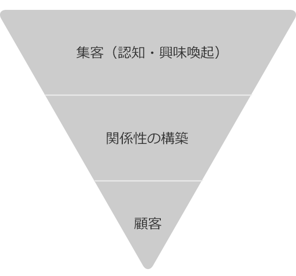 認知の段階から興味がある人にアプローチして顧客になるまで良好な関係を保って母数が極端に減っていかないモデル